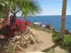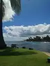 - there is a limited beach area, however there is a grass area where you can setup a picnic, beach chairs, etc. under palm trees overlooking the little cove. No sand, and you get the beach atmosphere - amazing views at sunset!