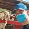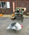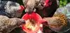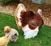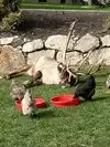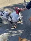 I went to feed the chickens after the shopping. There was no one at the chicken feeding table, but I helped myself to a small amount of the chicken food and delighted at the chickens and turkey pecking at it.