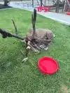 We walked to a covered pavilion and sat on benches for the fun, educational reindeer talk. The farm was created by a family in 2016 with 6 Alaskan reindeer. The mother who usually gives the talk was away on a well deserved vacation with her husband, and her daughter did an excellent job being funny, enthusiastic, and teaching us about reindeer, caribou, and the farm. As an adult with no kids, I thoroughly enjoyed the talk and being able to hold and touch reindeer antlers from a one to three year old. We received a safety briefing especially since it was "rutting season."