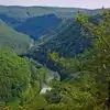 The State Park offers some good views into the Pine Creek gorge also known as the Grand Canyon of PA., Very nice entrance area with beautiful rhodendrum in bloom . The park offers some good views of the gorge and river below from the paved area. Also walked down the dirt West rim trail which is kind of steep for the last 50 yds. This could have been better marked for safety purposes.