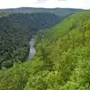 Vacationed in Mansfield/Wellsboro area recently and was a bit underwhelmed. Leonard Harrison State Park is beautiful. IF you plan to venture down Turkey Path to the bottom beware. The path is 1 mile in each direction and 1800 feet down. It is a steep descent, narrow at times and muddy in spots. The plus is several waterfalls nearer to the bottom. The big minus is, a 1 mile walk back up that steep grade. Just past the waterfalls is the end of Turkey Path and, you are now standing on the Pine Creek Rail Trail. Save this trip for the Fall. Trees that are green now will be multi colored come then. Take the ride to Letchworth State Park just over an hour North of here. You won’t be disappointed! If you have to choose, choose Letchworth hands down! Letchworths views include rock wall ledges that give more of a “Grand Canyon” appearance. The waterfall and train bridge above it at Letchworth are worth the ride alone. Bring your bathing suit. Letchworth has an Olympic sized pool which is free. There is a $10 admission to Letchworth so be mindful of that.