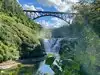 We enjoyed our visit here. There is plenty of parking. Trails are well maintained and we enjoyed the views of the waterfalls. It was busy over memorial day weekend. There is a $10 entrance. Definitely look at a map to check out all the overlooks and hiking trails. We started with the upper falls. There are alot of steps. The views of the bridge and gorge are breathtaking. Definitely need hiking boots, it gets slushy. We drove to the lower falls and hiked from there. Inspiration point is not to be missed. We packed a picnic and had it at the many tables available. My son enjoyed the park as well. There are restrooms available onsite.