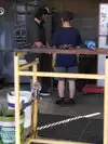 They not only have the indoor are to watch, if you're not making one, they also have a garage door like side of the building that they open up so people outside can watch too!