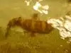 The turtles swimming in the front are beautiful.