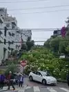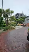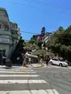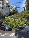 Super steep street with lots of plants along the way and older buildings all the way up. Worth the climb just to see the cars head down from the top!