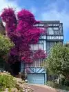 Gorgeous street! We loved the hydrangeas, and make sure to check out the bougainvillea on the blue house!