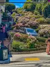 Interesting activity. Fun to see the drivers’ reactions while controlling their vehicles. We didn’t drive down. We walked up from near Ghirardelli square (tiring walk). Then walked down the stairs on Lombard. I think the drive down is doable. But it won’t be as much fun as walking down and watching. That’s what we did. The stairs on both sides are surrounded by flowers, which is what makes this place attractive. A lot of people didn’t file the instructions and jumped onto the street to take pictures. Avoid doing this. Make it pleasurable for both yourselves and the drivers.