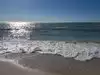 In the summer, there are lots of sanddollars, starfish and dolphins around. We have seen manatees at this beach (close by).
