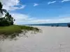 It’s a fantastic beach with the perfect yet simple amenities for the family. The washrooms are very clean and located directly behind the parking lot. You have the option to rent beach chairs and umbrellas. The water is shallow and very clear, unless there is a high tide which tends to cloud it up somewhat. The sand is white!