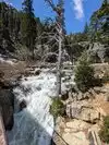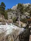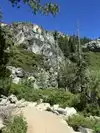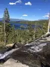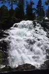 Access to Desolation Wilderness area. Dramatic waterfall, good trail. One of Tahoe's historic trails described in Alpine Sierra Trailblazer guidebook. Parking can be full in summer months, best to access early in the day.