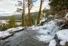 Saw the area from South Shore- looked like Snow. As we drove around Emerald Bay, we discovered it was Lower Eagle Falls. We stopped and walked down the stairs to see the water cascading over the rocks. What an unexpected treat!!! Will recommend stopping by to anyone in the area,.