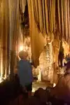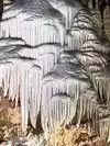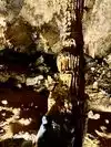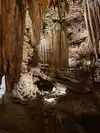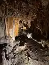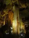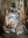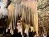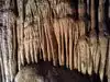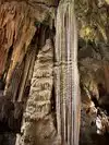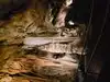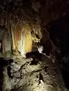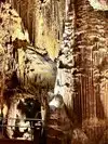 The tall caverns soar high above in places. Stalactites hang and stalagmites reach. Where they finally meet a column or pillar is formed. There are sheets formed by these speleothems that look like folded cloth and have been described as scarves, shawls and draperies.