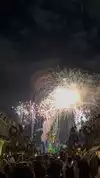 The fireworks show is really a separate show, but with thousands of people under the rain, it's 40 minutes late.