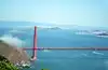 Off of 101 at exit 442 only a few feet beyond the Vista Point turnoff at the northern edge of the bridge. Follow the off ramp about 100 yards to Alexander Avenue. Left onto Alexander, curving under the bridge abutments. Turn right onto Conzelman Road about 150 feet after going under the brifge. Take Conzelman - curving up to observation points on the Headlands. When I was in the area long ago, this used to be called Fort Cronkite . . . That's how ancient I am! This vista gives you a full left to right view of the bridge in its entirety - both towers and through the middle of the suspension cables a great view of San Francisco itself. Even better on a foggy day when the white stuff rolls in, partially obscuring a portion of the structure. Enjoy!