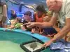The touch pool also contains a very anti-social Atlantic stingray, a huge hermit crab and some horseshoe crabs, and a beautiful Florida Horse Conch. The guide relates fascinating information about all the creatures and answers questions from visitors.