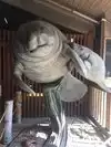 There were several tanks with fish life to look at. A touch tank had three cow nose and one Atlantic bottle nose sting rays, a horseshoe crab, and a very large Caribbean rock hermit crab. There were large tanks in back with giant turtles receiving treatment for injuries or illness. An area held cages with many types of birds.
