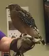 One of the staff brought a red hawk to a small room (seating for 50+ visitors) and explained about the details for the hawk.