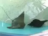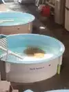 After you pay, you go to the right and through the gift shop area to the floor in which there are several aquariums and a touch pool for sting rays. You pass out to the turtle area where you can look over several tanks which hold turtles which are in for rehabilitation.
