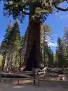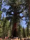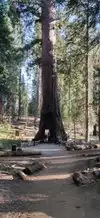 You park and take a shuttle in to the grove. The trail is easy and wide, but climbs up going in. It is about 0.6 miles to the Giant Grizzly but there are plenty of trails here to see other giant trees. This is just inside the South entrance so hit it going either in or out of the park. Restrooms are at the car lot and again a ways in to the grove. Great trees!