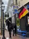 Market Square is a vibrant area with lots of historic architecture, the North Church, the Athenaeum, and several cafes, restaurants, and shops, but we saw something this visit that we're never seen before -- a horse patiently waiting outside Kaffee Vonsolln for its owner and drinking water from a bowl. It might have been a policeman's horse and maybe the officer had to 'see a man about a horse' -- that would explain it!