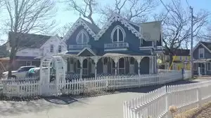 The gingerbread houses is what you think of when you think of Martha's Vineyard. The beautiful Victorian brunch brightly colored gingerbread houses in oak