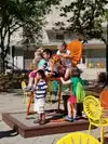 Great place to go to enjoy Babcock ice cream, explore the water front, photo op with the oversize terrace chairs, and the kids had fun climbing on the Bucky statue near the Red Gym.