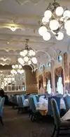Evening dining on board is in two sittings and you get a fixed table - hope you like your fellow diners. The service is amazing for the number of meals coming from kitchen to table and the quality of the dishes is very good to excellent. They serve just one red and one white wine of the quality you'd pick up in the UK for around £6 or £7 a bottle, but no one wine can match the range of dishes (two wines if you swap between white and red). You may get what they call Champagne - it is French, but not from anywhere near the Champagne. It's probably the quality you'd get for 3 or so Euros in France. It's a shame that the wines don't live up to the quality of the food.