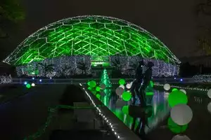 I attended with my family in December 2021. It was so beautifully decorated with lights. That's all just lights. We just strolled at our own pace, there were no lines to wait in, just a steady stream of people following the path the gardens. We could stop along the path anywhere we wanted and admire. No rush, no hurry. Drink stations were placed every now and then, for all ages. The little ones were SO excited. I live in South St. Louis County, less than 7 miles away and this was my first time attending this spectacular event, never knowing what I was missing.