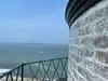 This lighthouse is different in that you don't exactly get to walk on the outside. A small balcony for 2 people gives you half the horizon to look at. The next floor up allows to see 360 from the inside, but only one person at a time standing on a ladder step. It is small but worth the visit. Only 13 people are allowed in the tower at once for safety purposes. The adjacent museum and historic sites are fun to see.