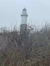 Just bricks now, not the famous black and white stripes. The lighthouse is in danger of falling into the ocean so major renovations to fix the erosion.