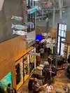 In the middle of the building is a large area with a coffee shop and restaurant.