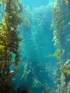 The Kelp Forest is a huge tank that goes over both floors, with sharks, incredibly large, totally relaxed fish and typical Californian kelp forests.