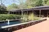 Visitor center architecture was reminiscent of Frank Lloyd Wright architecture Surrounded by woods. There are not metal detectors to get through the visitor center however they do have you take any sharp implements or weapons from your purse, pockets or backpacks and lock them up in a clear Lucite locker of what you get a key to carry with you and you can retrieve those at the end of your day.