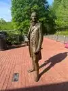 We were told that we could see a brief movie while waiting for the bus, which turned out to be some guy dressed up like Jefferson answering questions from a couple of families in the room. We hung out for about ten minutes, still no movie. We left, and then went to find where the shuttle left. There were no obvious directions, so we asked one of the staff members.
