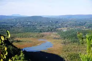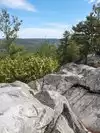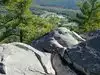 invigorating steep climb for 3/4 of a mile up to a rocky summit with beautiful views over the Great Barrington and the Berkshire Hills Alternate route is more gradual and 1.5 miles Beautiful forest and boulders, well worth the effort