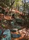 We did the Indian Head Trail which is 1.5 miles each way. It starts out a little rough stepping on rocks and tree limbs but after a few minutes you get to a clearing by the vehicle access road. There are parts that are pretty easy and flat and once in a while you get to parts that are a little harder to step on rocks and tree limbs. All of the leaves were covering the trail so it was hard to see where you were stepping and sometimes slippery from the leaves. But we took our time and it probably took us under an hour to reach the top. There is a big inscribed rock at the top. I thought there would have been more of a clearing for a better view than there was.