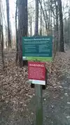 The trails here are exceptionally maintained and marked, with freshly painted blazes and wayfinder signs at trail "intersections." We took the Hickey trail, which is indeed a strenuous hike but manageable even for relatively inexperienced hikers. There's a bit of rock hopping at the summit of the Squaw Run trail -- but the view is lovely. The Hawthorne/Melville history adds another interesting dimension to your outing.