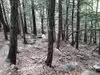 Monument Mountain hiking trail starts on route 7, very easy to find. Many tall straight pine trees in view.
