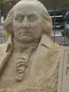 Sandcastle of George Washington is on the lawn next to Morris county Court house for short time. It was sculpted yesterday during the Annual Morristown Fall Festival. Morris Twp Destination Stop with a football of course for Football Season.