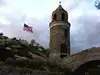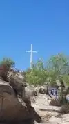 the view from the top and along the way were breathtaking. there is a cross on top of the mountain as well as an American flag and a tower on the side close to the flag.
