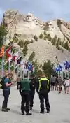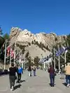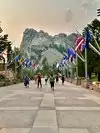 it's simply a stunning view of the presidential memorial when you walk down the Avenue of Flags. Lots of people but not really overcrowded. Beyond seeing the four faces carved into the granite peak there is much more to see and explore; some of it via many stairs. Take your time to take it all in