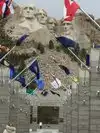 At the end of the Avenue of Flags is a very large concrete platform from which to view the monument head-on. So many visitors have complained about how far away the monument is that I almost expected to see a faint image of blurry faces in the distance. But standing on the viewing deck, I was not disappointed at all. Any closer and the viewer's focus would shift to examine the details of the cuts and shapes of particular elements, detracting from the realism of the overall image. Besides, smartphone cameras today make it possible for everyone to capture details in photos.