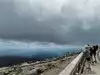 The cost to drive up is $45 for the car and driver and an additional $20 for each passenger. So for a family of 4 the cost is $105. The road up is fairly narrow with steep drops and no guardrails. The day we drove up was rainy with almost no visibility near the top. We and others had our hazard lights flashing as you could barely see if a car was in front of you. We drove to the top and parked. We needed thick winter coats gloves and hats. The wind is strong and there was snow on the ground. If one of us walked 10 feet away, they could no longer be seen. We walked up the stairs to the summit area where the first thing we saw was a closed building. Next to it was some porta potties in an enclosure. After that, is another parking lot – for workers and tours and then the Visitor Center. We could not see any of these buildings until we were right next to them, due to the visibility. In each case, we found one thing, walked a bit further then saw the next thing. To find the Visitor Center, we found first the parking lot and then followed the parking lot until we saw the building. The building has a little restaurant, gift shop, museum, visitor info and plenty of flush toilets. You can then exit the other side if the Visitor Center building, walk up a short way, to take a picture near the Summit sign. We also walked onto the observatory area, but the wind was soo strong that it was difficult to even stand still. The worst part was the drive down, as it was very difficult on the brakes. There are several pull outs with signs recommending you let your brakes cool and indeed, we needed to do that once, even though we were driving in low gear. Note: We noticed some hotel vans driving passengers to the top and back down. This may be an option if you are unsure of the drive or want to save your brakes.