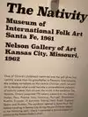 Unfortunately they do not have SIGNS!!! which is weird and bad. You have to carry a booklet around with you and match the numbers to the display. (You can also have a free audio tour, or a docent tour, but both only do a handful of the exhibits). The information in the booklet is EXCELLENT!!! I'm so sorry that I saw many people without the booklet, as it doubles and triples the enjoyment of the pieces. In one scene, there is a row of people walking up a mountain, and it's easy to miss that there is a tiny little nativity scene at the top. Or a flowery wreath looks decorative, but was made for a child's grave. Or that six countries make almost exactly the same kind of wooden dolls; how is that possible?