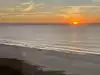 Nice beach, lots of wind though. Clean and morning sunrise was gorgeous. Loved walking on beach and lots of different areas Togo directly to sidewalks.