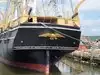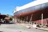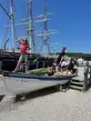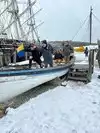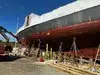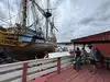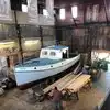 * An active shipyard showing various historic boats being restored by master boat builders.
