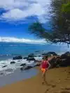 Perfect low key place to relax, boogie board, and watch intermediate surfers. We were here when the winds were high so there were unusually big waves rolling in which made it almost too hard to boogie board. The surfers were having a great time. The beach had nice, soft sand with plenty of room to spread out. Normally there's good snorkeling in the bay not far from shore. Low key, quiet beach. Free parking on Napili Pl. Fun tide pools at the south end of the beach.
