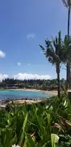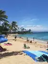 This is a gorgeous bay with pretty gentle water that turns electric blue when a cloud comes over. It also has the nicest sand and beautiful views of Molokai. There are many shaded areas due to the palm trees on the beach. I could've sat here all day with the great breezes. Not too crowded, as I'm not sure if this has public access other than the hotels that share the beach. My favorite of our trip!