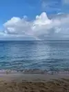 It was raining and hot. the result was a beautiful rainbow. The area is lovely. Areas for snorkeling sea turtle and flying fish sightings can be expected