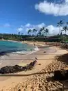 Nice beach which might deserve a higher rating anywhere else in the world but certainly not in comparison with other Hawaii beaches. It is rather steep and small so gets crowded sooner than others.